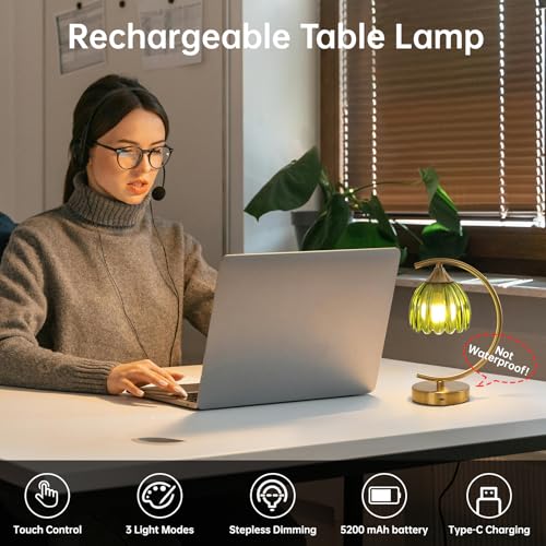 ???? ?Perfect Gift-Ready & Effortlessly Functional?:This rechargeable table lamp blends elegance with practicality, designed for gifting? and everyday use. The tarnish-resistant brass base ensures lasting durability, paired with a delicate tulip glass shade that casts a warm, ambient glow. It's a stylish and functional gift for housewarming, birthdays, weddings, or as a thoughtful desk accessory. It's a crowd-pleaser that blends practicality with decorative charm.