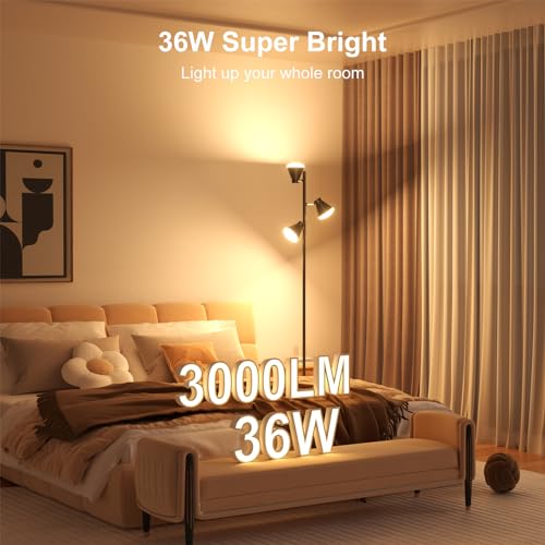 Energy Saving LED Floor Lamp -- This modern floor lamp is equipped with LED light, 36W (equal to 200W incandescent), which is up to 3000 lumens. enough light up the whole room. No need to buy extra light bulbs. There are 3 adjustable color temperatures changing (warm, neutral, white) to provide warmer and brighter light