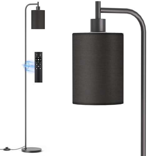SIBRILLE Floor Lamp with Linen Shade, Dimmable Tall Standing Lamp with Remote Control & 3 Color Temperatures, Modern Floor Lamps for Living Room Bedroom Office Corner, 9W LED Bulb Included