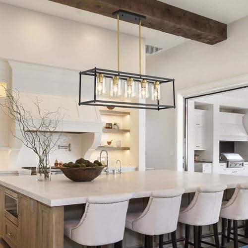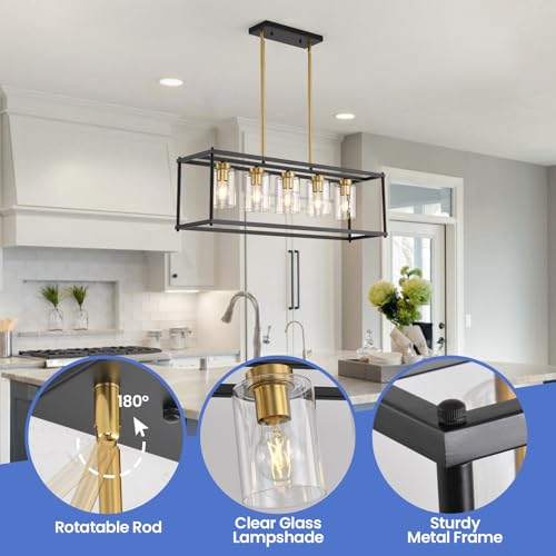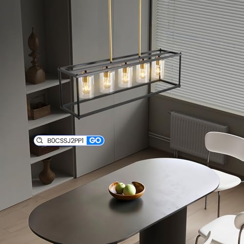 ?[Craftsmanship&Farmhouse Dining Room Light Fixture]: This classic rectangular design features a 35.4-inch linear metal frame with a matte black finish. It is ideal for modern, industrial, or farmhouse spaces and elevates elegance in dining rooms and kitchen islands.