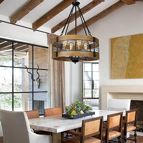 ?[ UNIQUE ROUND CHANDELIER] This unique chandelier is a drum chandelier round. The middle metal mesh is designed in the shape of a honeycomb, which is our unique design.You can use it as wood chandeliers for dining room,farmhouse chandeliers for kitchen hanging lights,farmhouse entryway light fixtures,industrial chandelier,wood farmhouse chandelier for living room,farmhouse hanging lights for foyer,rustic dining room light,wooden farmhouse chandelier for entryway,metal kitchen light fixtures?round kitchen light fixtures,black wood chandeliers for dining room,etc.