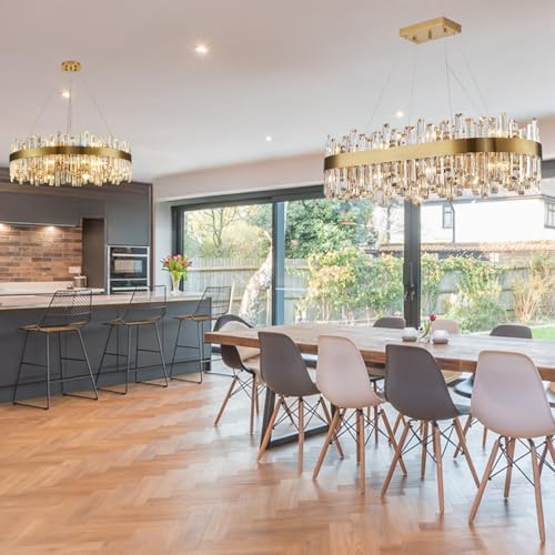 ?Luxury Gold Crystal Chandelier?: This gold rectangular crystal chandelier is a statement piece that can transform the ambiance of any space. The beautiful raindrop crystals refract the light to produce a warm & soft lighting ambiance that enhances the aesthetic of your dining room. Suitable for dining room, living room, kitchen island, bedroom, pool table, home office, hallway, bathroom, patio, foyer, etc.