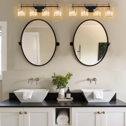 LIGHT BULB SELECTION:Our black crystal vanity lights compatible with E26 bulbs (Max 60w).The dimming function can be realized by dimmer and dimming bulb (excluding dimmer and bulb).Choose the bulb and color temperatures suitable lighting effect according to your different needs.