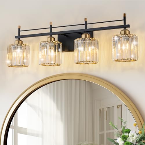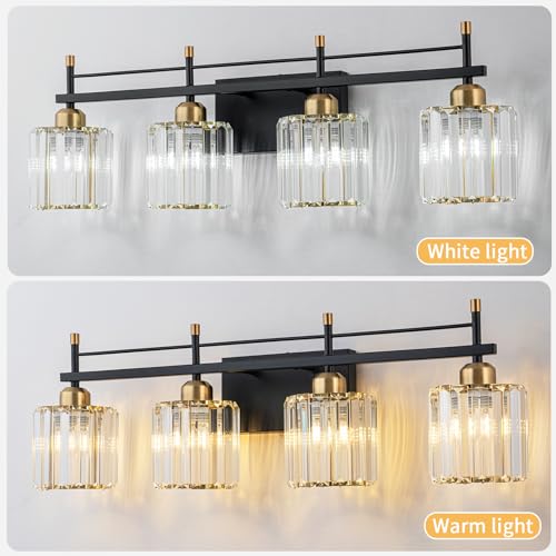 MATERIALS:The black gold bathroom vanity lights over mirror are made of stainless steel metal combined with K9 transparent crystal.The frame with metal facing is corrosion-resistant and not easy to rust.It can provide long-term lighting for your home.