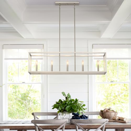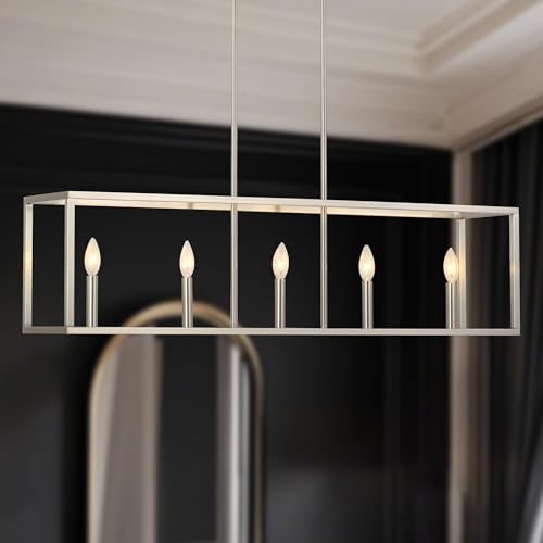 Modern and Linear Design: This 5-light island lighting fixtures features an open, geometric frame with brushed nickel finish. The simple and contemporary design could not only illuminate but also make your kitchen island, dining room or farmhouse look more stylish.