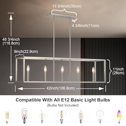 Adjustable Height: The rectangular island lights for kitchen comes with 4 hanging rods(1x 6inch, 3X12inch). Maximum height of chandelier: 46.75inch. Minimum height of chandelier: 10.75inch. This island pendant light fixture can be adjustable according to your desired hanging height to create a perfect look to match your home.