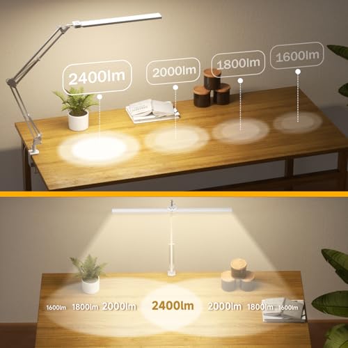EASY to INSTALL: Connect the clamp and power supply to use. The adjustable double head desk lamp saves you more office space through the clamp. The touch surface of the clamp has been affixed with a protective pad, which can easily protect your desktop