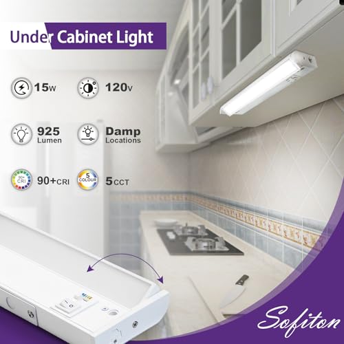 ?Superior Lighting Quality? This kitchen under cabinet lighting boasting a CRI (Color Rendering Index) of over 90, it accurately displays the true colors of objects beneath it. The 70° adjustable light surface directs light precisely where you need it. The under counter lighting delivers 925 lumens of bright, even light on a 120v power supply