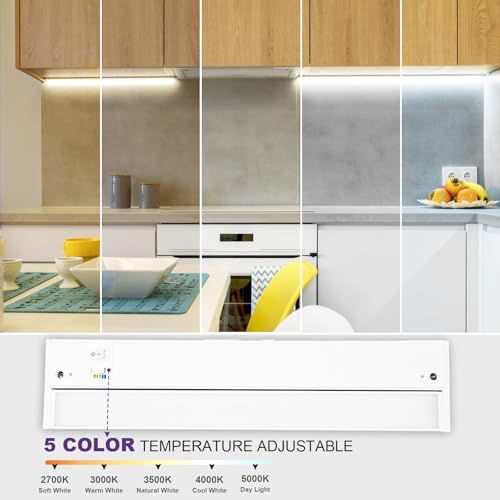 ?5 Color Temperatures? This under cabinet light offers five selectable color temperatures - 2700K, 3000K, 3500K, 4000K, and 5000K. Whether you need a warm, cozy glow for a relaxing kitchen environment or a bright, cool light for task lighting, you can easily set the perfect mood