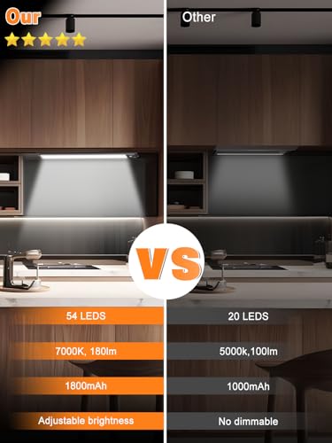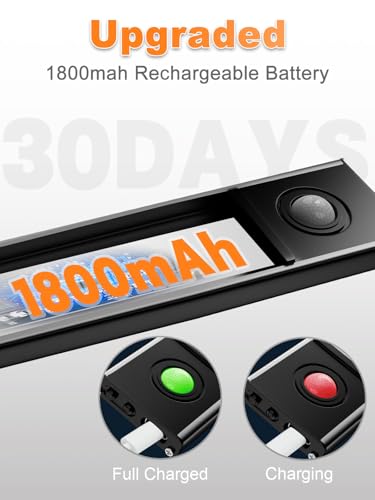 Larger Rechargeable Battery for Long-Last: Equipped with a 1800mAh rechargeable battery, our led cabinet lights provide extended usage without frequent recharging. In always-on mode, they last up to 9 hours, and in motion sensor mode, they can last 7-30 days on a single fully charge (depends on how often you use)