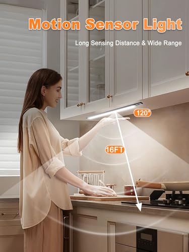 Upgraded Motion Sensor Under Cabinet Lights: With the development of PIR motion sensor technology, our cabinet light motion sensor has been updated to the latest version. Setting the under cabinet lights on motion sensor mode, they auto-on when human motion is detected within 120°and 16ft in a dark or low light environment, and auto-off after about 25 seconds of no motion detected,which can cover your walking path