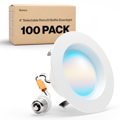 Sunco 100 Pack 4 Inch LED Recessed Lights, Retrofit Lighting LED Can Lights Downlight, 660LM, 2700K/3000K/3500K/4000K/5000K, Dimmable, Baffle Trim, 11W=60W, 50000 Lifetime Hours, Damp Rated UL