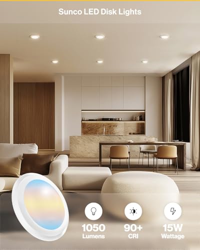 Sunco 12 Pack 5/6 Inch LED Disk Lights, Flush Mount Disc Recessed Ceiling Can Lighting, 1050 LM, Selectable CCT 3000K/4000K/5000K/6000K/6500K, Dimmable, 15W=75W, Damp Rated ETL