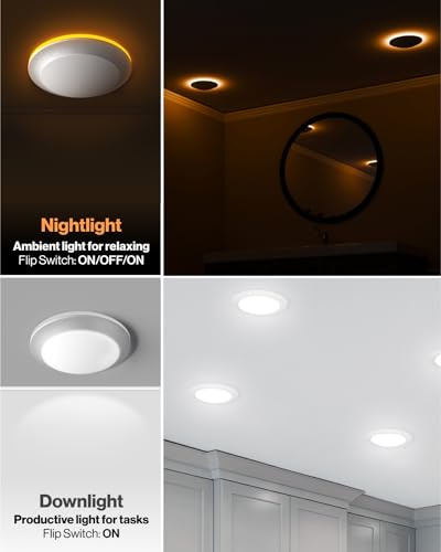 ? NIGHT LIGHT MODE – Flip your wall switch to activate the edge-lit nightlight mode and provide a soft 2700K Amber Glow when you need it most. Use the night light’s low CCT for a warm, relaxing hue of light in your family room, bedroom, hallway, living room, or common areas in your home or office.