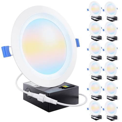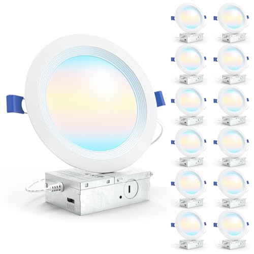 Sunco 12 Pack 6 Inch Ultra Thin LED Recessed Ceiling Lights, Baffle Trim, Selectable CCT 2700K/3000K/3500K/4000K/5000K Dimmable 14W, Wafer Thin, Canless with Junction Box