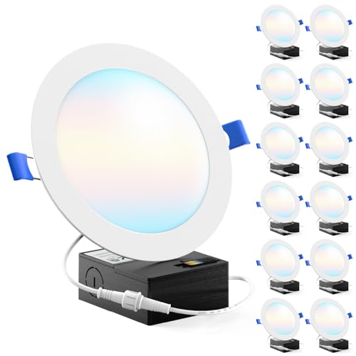 Sunco 12 Pack 6 Inch Ultra Thin LED Recessed Ceiling Lights Slim, Selectable CCT 2700K, 3000K, 4000K, 5000K, 6000K, Dimmable, 14W, Wafer Thin, Canless with Junction Box - ETL