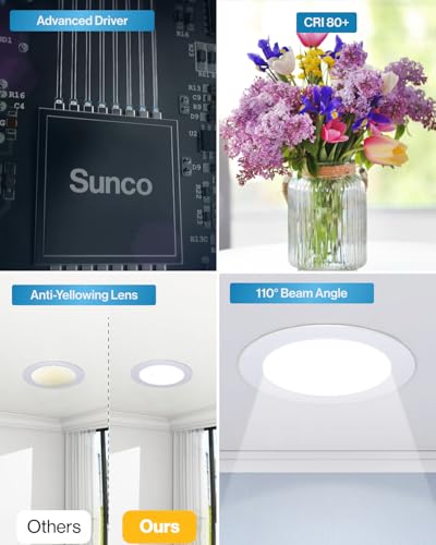 ? SELECTABLE CCT - Sunco's 3” dimmable (10%-100%) LED Selectable Slim Downlights provide instant bright light in various color temperatures (2700K, 3000K, 4000K, 5000K, 6000K) to suit the look and feel of your space. Featuring a 90+ CRI rating, our Slim Downlights give off sunlight-like quality.