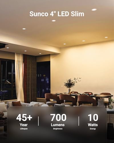 Sunco 24 Pack 4 Inch LED Recessed Lights, Canless Ceiling Light Slim, 700 LM, 10W, Selectable CCT 2700K/3000K/4000K/5000K/6000K, Dimmable, Wafer Thin, with Junction Box ETL