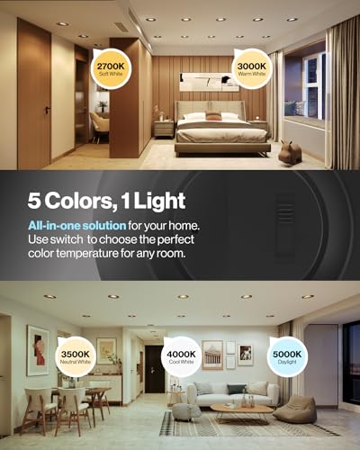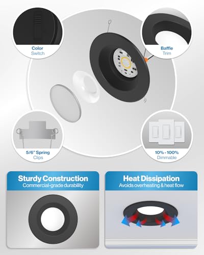 5-IN-1 CCT - Elevate the ambiance of any room with our LED Baffle-Trim Downlight's customizable color temperature feature. Simply use the slider switch to select from 5 options (2700K, 3000K, 3500K, 4000K, 5000K) and find the perfect fit for your space
