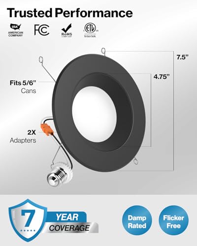ADJUSTABLE - Our Retrofit LED Baffle-Trim Downlights easily fit into 5" or 6" housing. Its compact design allows for versatile installation in various spaces. Seamless dimming capabilities (10%-100%) to fit any mood or decor