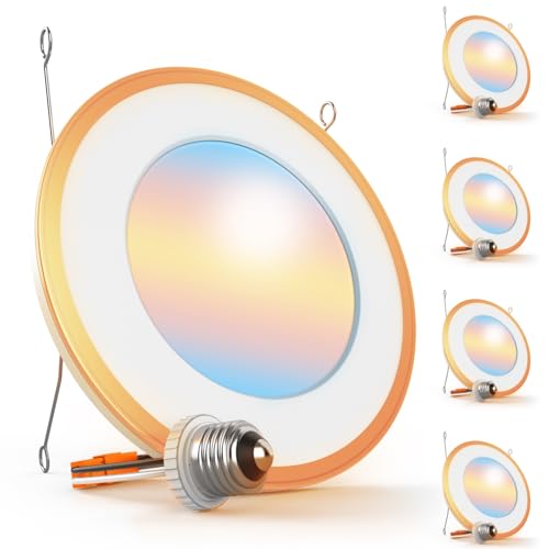 Sunco 6 Inch LED Recessed Light, Can Lights for Ceiling, Flat with Nightlight, 1200 Lumens, Selectable CCT 2700K/3000K/4000K/5000K/6000K, Dimmable, 13W UL 4 Pack