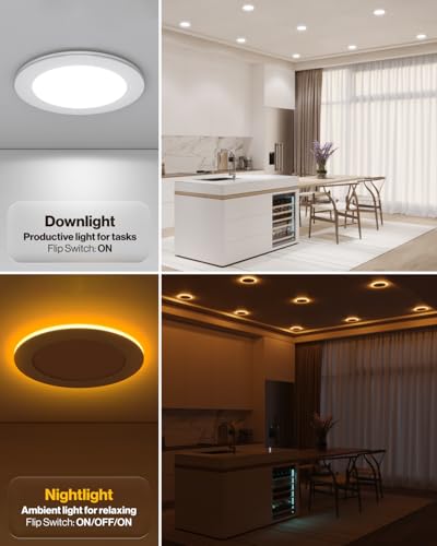 NIGHT LIGHT FEATURE - Simply flip the light switch twice to activate the 2000K night light. Both the downlight and night light are dimmable (100%-10%) as well.