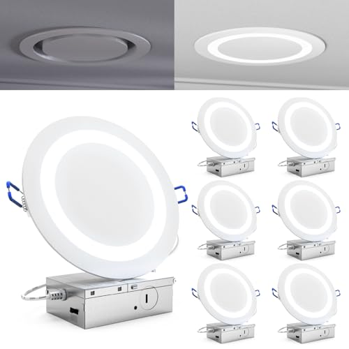 Sunco 6 Pack 6 Inch LED Slim Eclipse Ultra Thin Canless Lights, Ceiling Recessed Lighting with Metal Junction Box, 900 LM, Selectable CCT 2700K/3000K/4000K/5000K/6000K, 14W, Dimmable ETL
