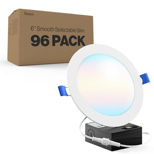 Sunco 96 Pack 6 Inch LED Recessed Light, Canless Ceiling Lights Slim with Junction Box, 850 LM, 14W (100W Equivalent), Selectable CCT 2700K/3000K/4000K/5000K/6000K, Dimmable, Wafer Thin ETL.
