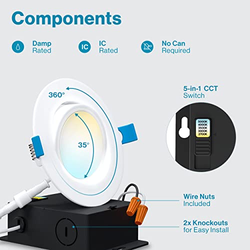 ? SELECTABLE CCT - Choose color temperature (2700K, 3000K, 3500K, 4000K, 5000K) to tune Gimbal to desired color setting. Easy CCT selection with the slider switch on light. Try each color temperature on our eyeball light, then lock in a selection during the installation.