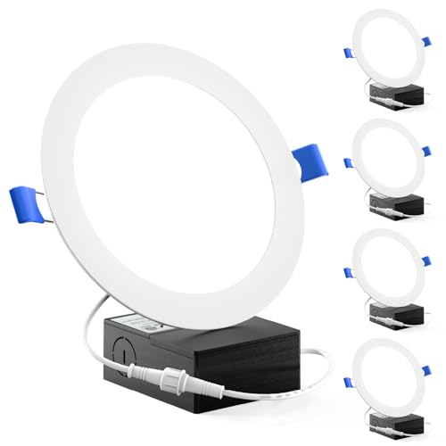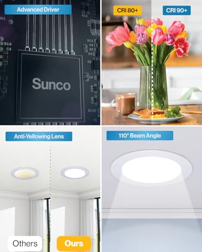 Sunco Recessed Lighting 6 Inch LED, Canless Ceiling Lights Slim with Junction Box, 850 LM, 14W (100W Equivalent), 2700K Soft White, Dimmable, Wafer Thin, 50000 Lifetime Hours ETL 4 Pack