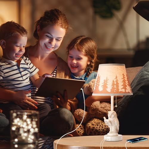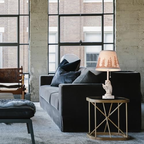 Rustic Charm and Design: Bedroom lamps set of 2 crafted from retro style white metal and resin,beige linen fabric lamp shade adorned with a forest pattern.Rustic table lamp exudes a warm,western ambiance perfect for any farmhouse or country setting