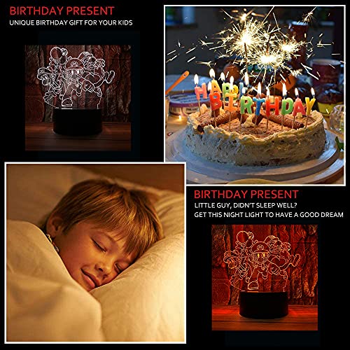 The 3D night light comes with remote control and smart touch control to adjust the 7 or 16 different colors as you like. With the remote control, the night light can be fixed in static or gradient color to decorate children's room, living room, bedroom, office,advertising promotional,holiday,bar,shop,cafe,etc.