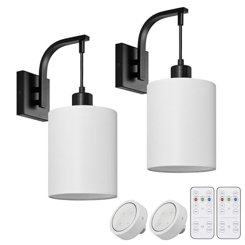 [Simple and Elegant Design]: Crafted with a square metal backplate and a neutral, cylindrical fabric shade, the wireless sconces set of 2 complement your current style and fixtures easily. Not only enhance your room wall decor but also deliver ample brightness to fulfill your lighting requirements