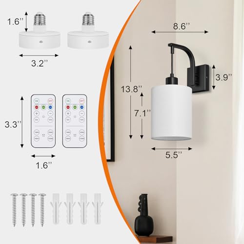 [Easy Installation - No Wiring Needed]: Powered by E26 based battery light bulbs, these cordless wall sconces can be effortlessly installed on any wall without the need for electricity. With all the necessary mounting hardware included, you can set the wall lamps up in minutes without the assistance of an electrician