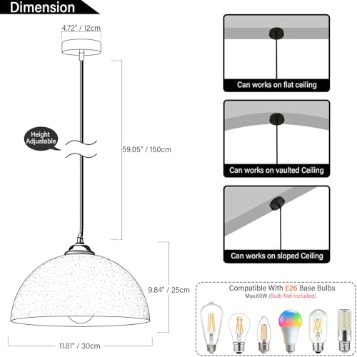 ADJUSTABLE HEIGHT: This dining room Lighting Fixture is equipped with max height of 59 in (150 cm) of hanging cord, adjustable height feature provides flexibility, allowing you to customize the pendant light's position to suit your space and lighting preferences. Suitable for any room whether it has high or low, flat or sloped ceiling