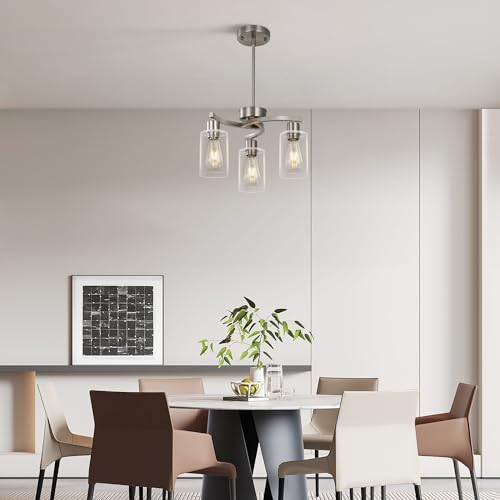 ???? Flexible Combination of Diverse Light Sources:Brushed nickel chandeliers for dining room is equipped with three E26 standard lamp sockets, compatible with incandescent bulbs, LED bulbs, CFL bulbs, and halogen bulbs (bulbs not included), and supports dimming functionality (requires dimmable bulbs and switches). The lighting ambiance can be freely adjusted from warm and comfortable to bright and white, meeting the needs of different scenarios.