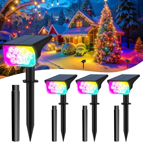 Christmas Multicolored Solar Spot Lights: 1 Auto Changing Color Mode + 6 Fixed Color Modes. With long press 5s to enter auto changing color mode directly. By short pressing the back button to choose fixed color modes Red, Green, Blue, Yellow, Cyan, Purple