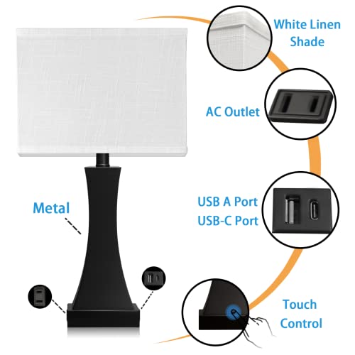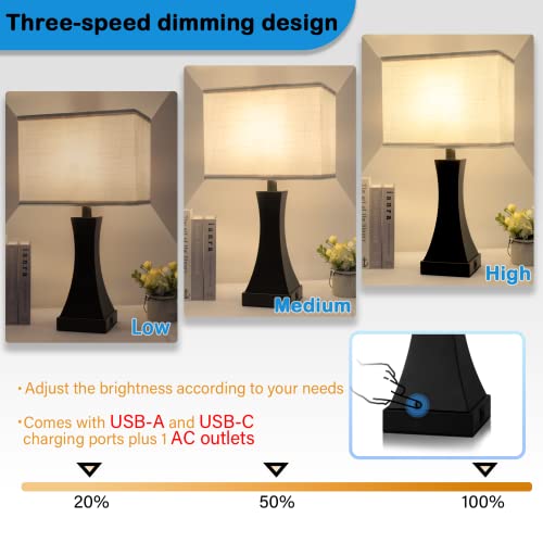 ?PRACTICAL AC OUTLET AND USB CHARGING PORT?This bedroom table lamp is equipped with 1 ?5V/2.1A? USB charging port and a 2-prong plug AC outlet (120V). It is also equipped with a C-type charging port for more convenience, you can use this Nightstand Table Lamp while charging most of your electronics, such as cell phones, tablets or others