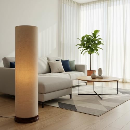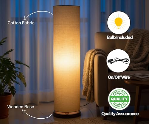 MODERN DESIGN: Sleek cylinder-shaped floor lamp combines contemporary style with a warm wooden base for an elegant accent piece