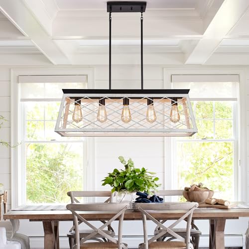 ?Dimensions?: This industrial and rustic farmhouse-style pendant light, made of iron with OAK & matte black finish, measures 33" L x 10.5" W x 56" H(Max) and is designed to work with a 110-277-volt line voltage system. Available in most countries (consult local electrical requirements prior to installation).