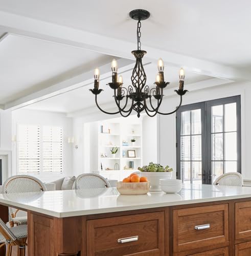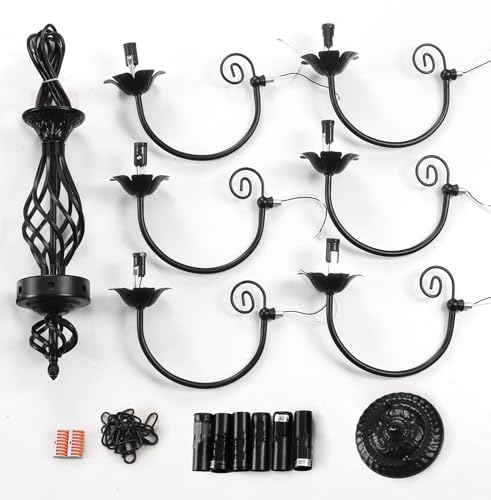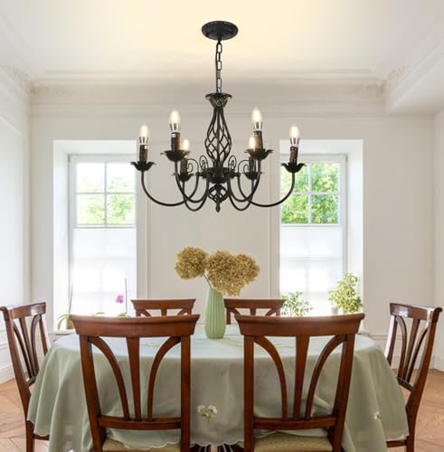 6 E12 Bulb Sockets: The black chandeliers requires 6 E12 bulbs with a maximum wattage of 40W each. You can use different types of different light colors to create a unique atmosphere in your house, vintage incandescent light, nowadays LED light, cozy warm light, bright white light, etc. (package does not include bulbs)