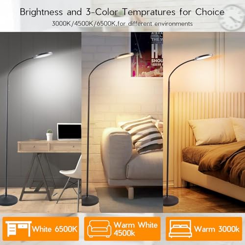 Universal Dimmable Floor Lamp:The brightness can be adjusted steplessly from 5% to 100%.4 color temperatures (3000K-6500K) Let you customize the most suitable floor lamp lighting for your bedroom.Tap the button to switch colors (White,Cool White,Warm White,Warm Color).The floor lamp can help you deal with the darkness,gloom,night lights,reading, and ambient lights in the room,providing an ideal lighting experience.