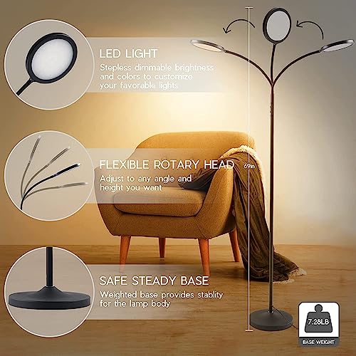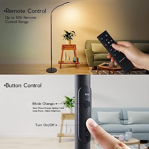 ?VERSATILE & DIMMABLE LIGHTS?This lamp for living room allow to customize your favorable color temperature by choosing from 10%-100% stepless dimmable brightness and 3 colors temperatures (warm, warm white, white) from 3000K to 6500K. The floor lamp for bedroom has a memory function to remember your last brightness setting when you turn the lamp on. Floor lamp can be set timer to turn off automatically after 30 minutes /1 hour