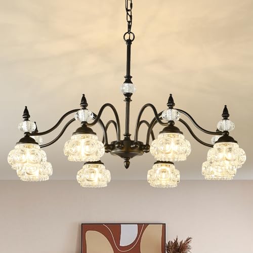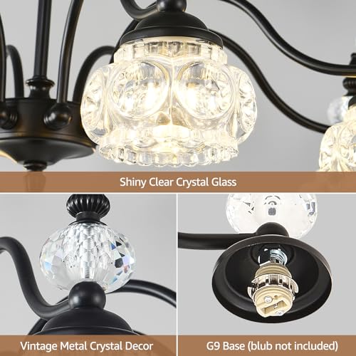 [Exquisite & Unique Design] -- TESTOYS crystal chandelier is carefully crafted by skilled craftsmen. Elegant appearance and sturdy material. This vintage black chandelier has a flower-shaped glass shade with super refractive light, which can present a wonderful lighting effect that can bring a warm and romantic, sophisticated and luxurious feeling to your home.