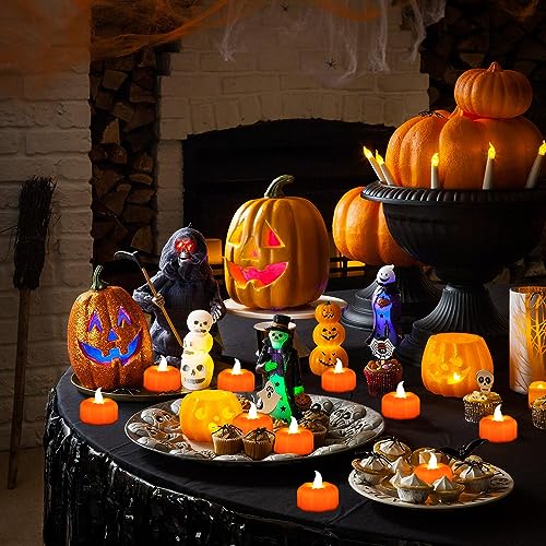 Ideal Halloween Decoration: These realistic flickering pumpkin tealights are suitable for fall, Halloween, Thanksgiving, theme parties, birthday, and holiday decorations. Great for decorating indoor, outdoor, at home, parties, wishing stands, tea light stands, fireplaces, dining tables, tabletop, room, bedroom, living room, dining room, kitchens, bathroom, windows, doorways, gardens, patios, wedding, bar, pumpkin lanterns, centerpieces, etc