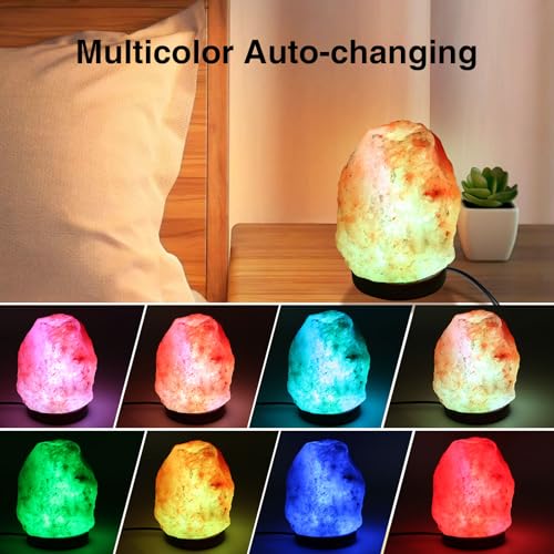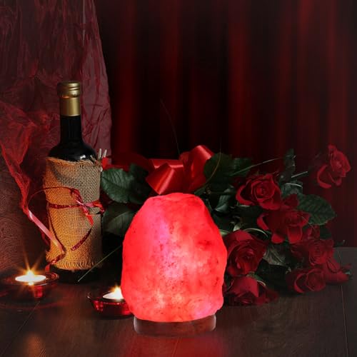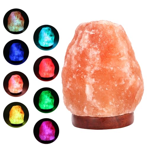 Himalayan Crystal Rock salt 2.2-3.3lbs & 4.72-6.3 inches, includes Wooden Base, Color-changing Multi-color Bulb and USB Cable.