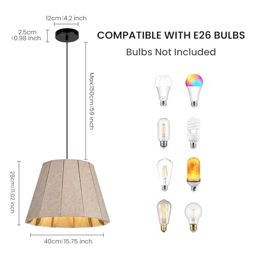Thoughtfully Sized & Adjustable: The pendant shade measures approximately 15.75" wide and 11.02" high, offering a striking yet balanced presence. Equipped with an adjustable hanging cord up to 59", this hanging lamp adapts easily to different ceiling heights and room layouts.
