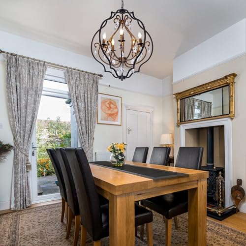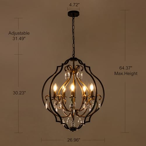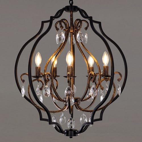 Farmhouse Chandelier: This 5 lights orb light fixture adds an elegant and rustic feel to your home decor. The combination of the two color finishes of the chandelier creates a surprising appearance, paired with cut teardrop crystals, adding a lot of charm to your space