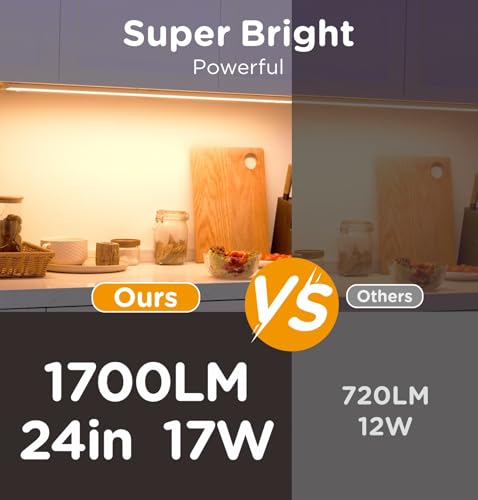 Super Bright & Energy Efficient: High brightness undercabinet lighting fixture, Upto 100+lm/w, comes in 800Lm/ (12in/8W);1000Lm (16in/10W); 1100Lm (18in/11W); 1700Lm(24in/17W); 2100Lm (32 in/21W). High efficacy under cabinet led lighting,drives more brightness with less power,cost saving, enjoy a bright Kitchen