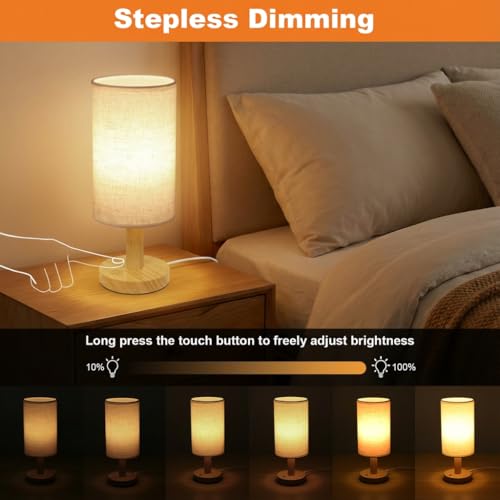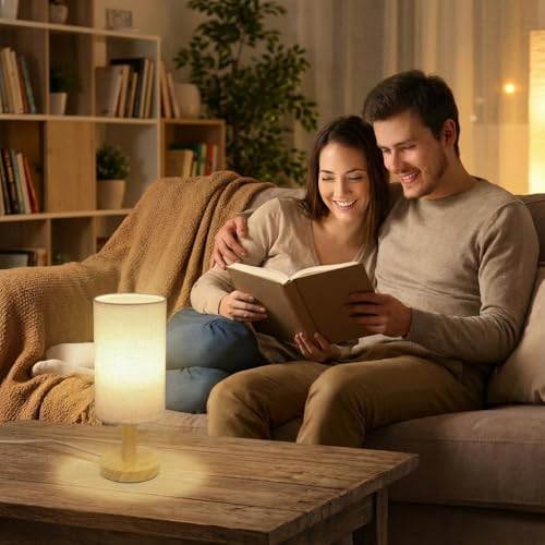 Natural Wood Base & Linen Shade:Crafted with 100% natural solid wood base (NO cheap plastic!) and premium linen fabric shade, this touch table lamp adds earthy rustic charm. Timeless minimalist boho design seamlessly matches modern, cozy, or boho interiors. Elevates nightstands, kitchen countertops, dorm desks, and home office spaces with understated elegance. It’s a great choice for boho decor lovers as a touch lamps for nightstand.